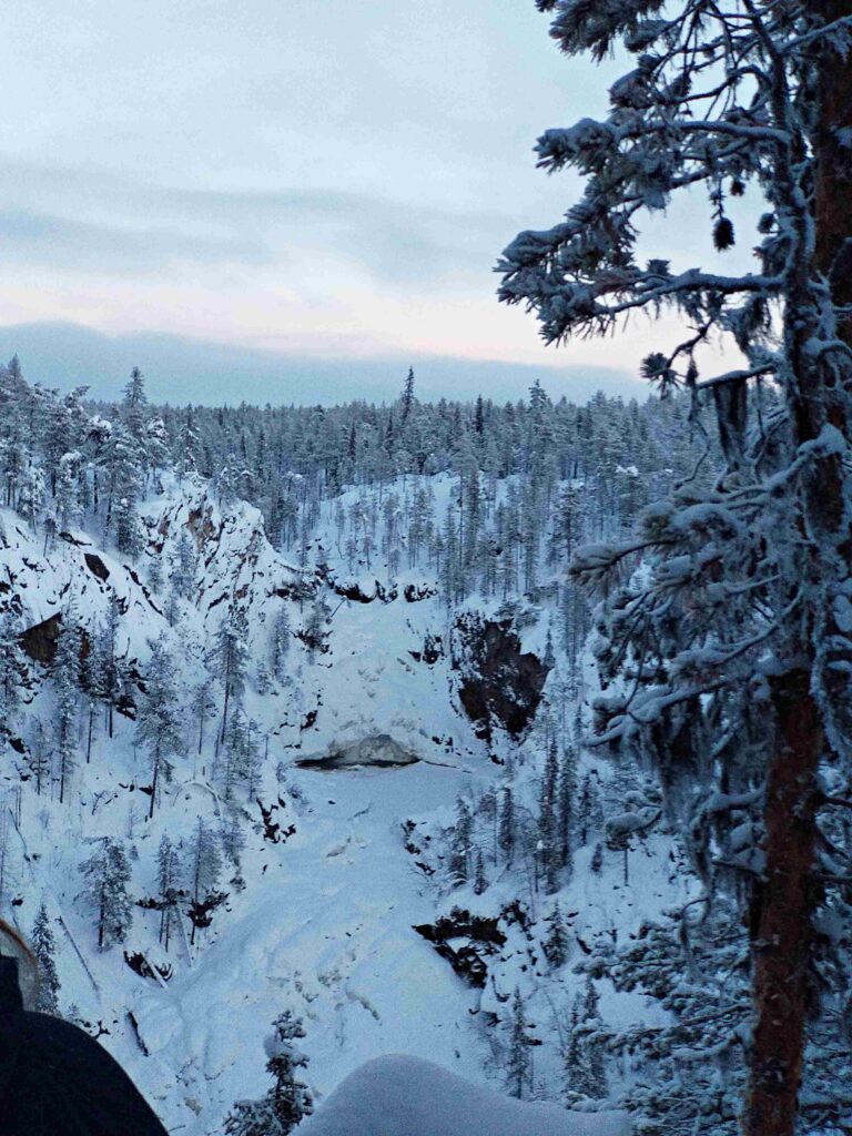 On november 18, 2023 by trolletSovmorgon! Så skönt det är att få sova tills jag vaknar av mig själv. Min kropp värkte och tröttheten var överväldigande. Jag kände mig helt knäckt! Kring mitt på dagen hade vi alla tagit oss upp och vår gruppledare samlade oss för att göra en liten sväng till Muddusfallet. Jag och en av vännerna som också hade haft det tufft dagen innan tittade lite tveksamt på honom och undrade om det var långt, men han försäkrade oss om att det var väldigt nära och att vi skulle orka. Han hade rätt och det var lite roligt att åka iväg i snölandskapet tillsammans. Det gick njuta av omgivningen nu när vi inte var nedtyngda av våra packningar. Vi kom fram till en utkiksplats för fallet och stod på rad och fotade det som nu vintertid var ett fastfruset isfall. Vi passade också på att ta ett gruppfoto.