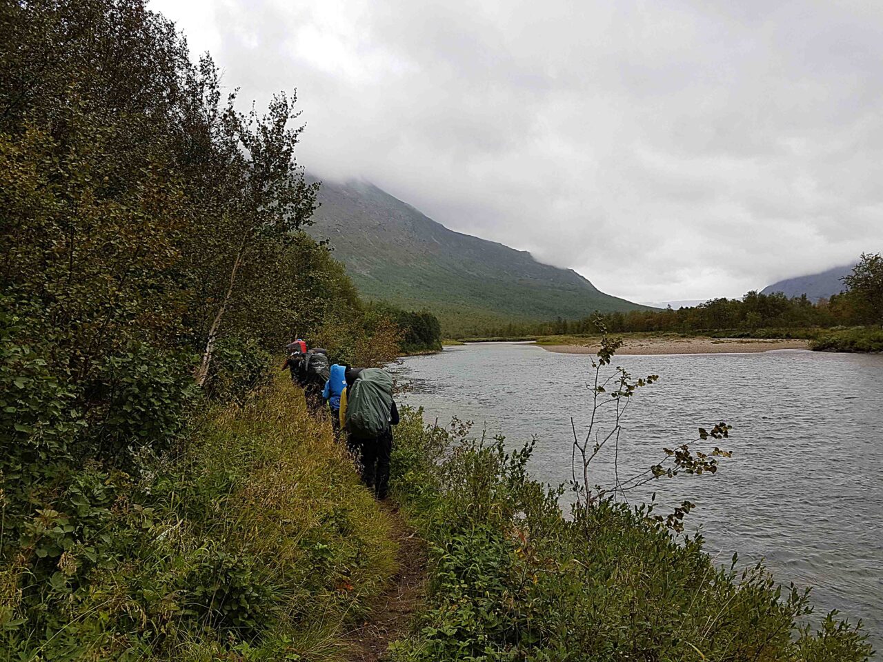 På eftermiddagen kom vi ner till älven med fjäll på båda sidor om älven. Grönskan bredde det ut sig på båda sidor och målade upp en väldigt vacker vy. Skogens lugn och skydd kändes välbehövligt nu.