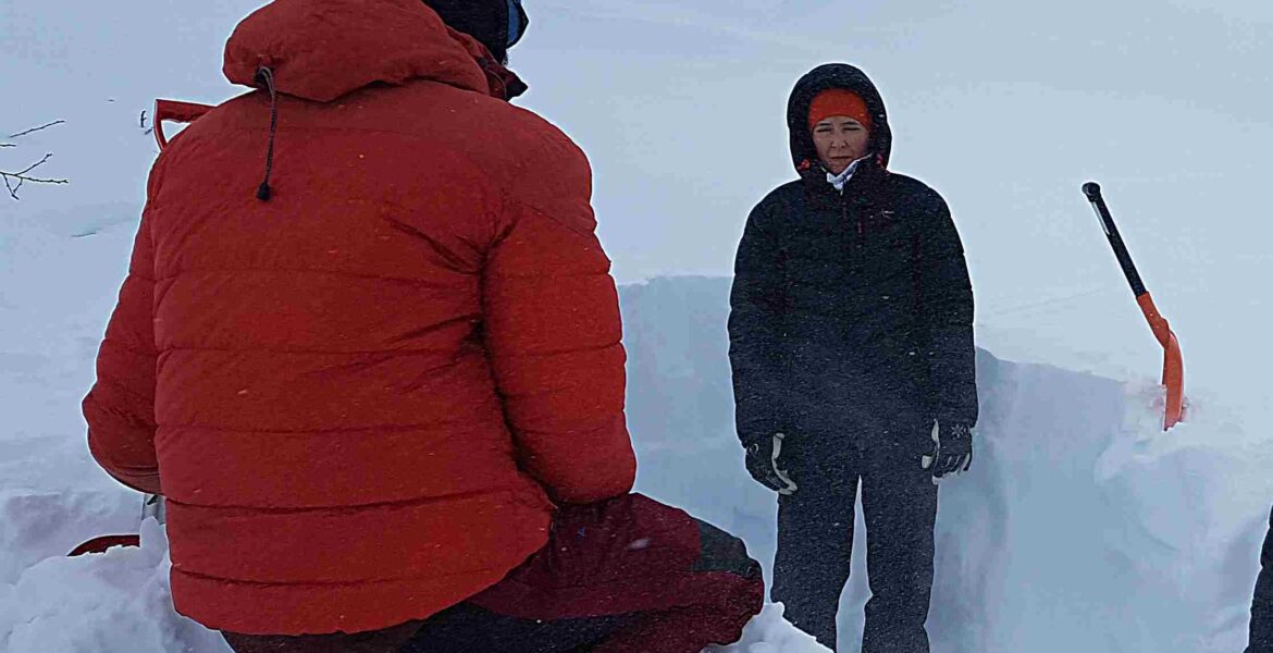 On februari 4, 2024 by trolletTemat för dagen var att gräva. Vi hade först teori en liten stund och fick sedan byta om och ta oss iväg på skidorna en bit uppför fjället. Vi kom fram till en lämplig plats och fick lära oss om hur man använda en sond, den långa pinnen man sticker ner i snömassorna. Jag trodde